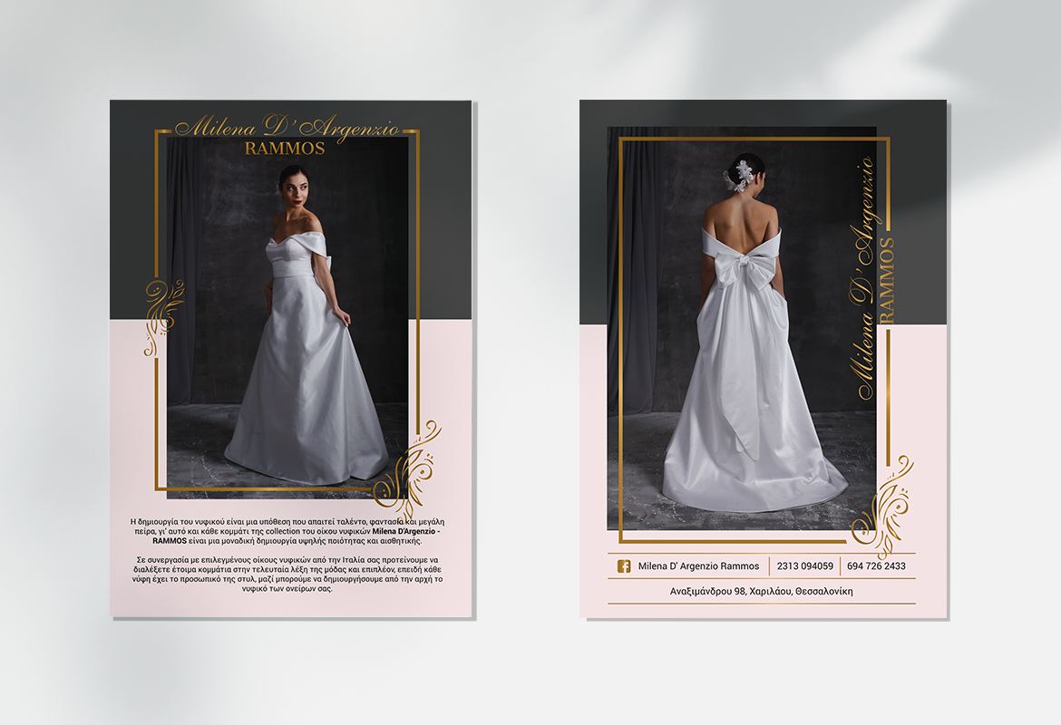 Σχεδιασμός διαφημιστικού εντύπου (flyer) για το κατάστημα νυφικών Milena D' Argenzio Rammos.